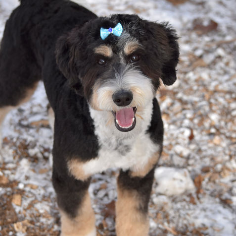 Rosie has a pretty big appetite and will eat just about anything she can get my paws on—peanut butter is her ultimate weakness (though toilet paper is a close second!). She’s also a bit of a furniture lover and has no qualms about claiming your seat the moment you get up. She enjoys lounging with her family and savoring a pup cup from the local creamery. Her favorite activities include playing with toys, barking at squirrels, and racing along the fence with the neighbor dogs. But she does have her little quirks—like when she’s in heat she gets a little annoyed by the neighbor dogs sniffing around.